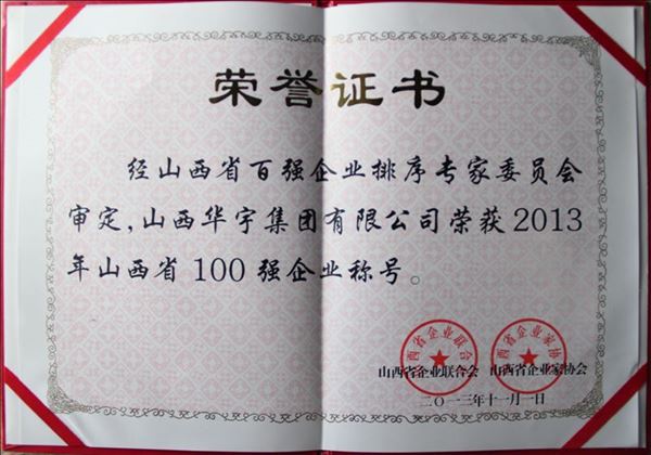 華宇集團榮獲“2013山西企業(yè)100強”第52名和“2013山西服務(wù)企業(yè)100強”第17名。