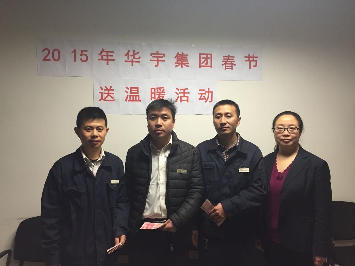 農(nóng)歷羊年春節(jié)將至,為了讓員工度過一個歡快祥和的節(jié)日,感受到華宇的關(guān)懷和大家庭的溫馨,集團黨委工會于2月5——9日開展了給生活困難的員工送溫暖的活動。5日,集團工會主席崔海燕代表趙華山董事長慰問太原地區(qū)各公司受助員工,將慰問金交到他們手中,并與員工進行座談,向他們送去關(guān)心與祝福,祝愿他們度過一個祥和的節(jié)日。